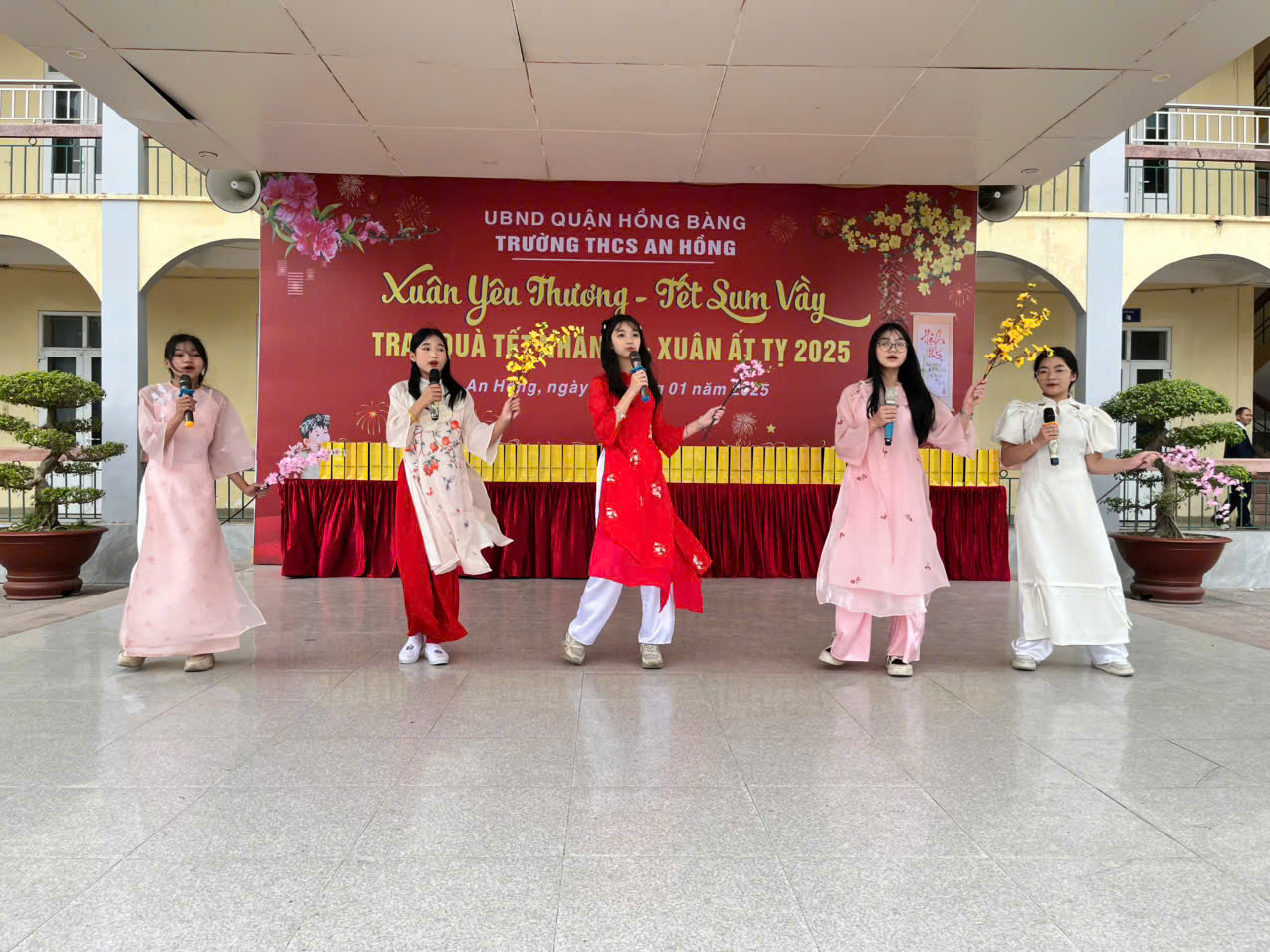Buổi lễ trao quà diễn ra trong không khí ấm áp và tràn đầy nghĩa tình. Tham dự buổi lễ có đại diện Ban Giám hiệu nhà trường, Ban ĐDCMHS, các thầy cô giáo, các mạnh thường quân cùng đông đảo các em học sinh.Trong chương trình, nhà trường đã trao 57 suất quà cho các em học sinh có hoàn cảnh khó khăn, mỗi suất quà bao gồm nhu yếu phẩm và tiền mặt với tổng trị giá 500.000 đồng. Ngoài ra, 19 suất quà khác được gửi tới các hộ gia đình chính sách trên địa bàn phường An Hồng, thể hiện sự tri ân tới những người có công với đất nước. Phát biểu tại buổi lễ, cô Nguyễn Thị Dung, Hiệu trưởng nhà trường chia sẻ: "Tết là dịp để mỗi chúng ta lan tỏa yêu thương và chia sẻ khó khăn với những hoàn cảnh kém may mắn. Chúng tôi hy vọng những món quà nhỏ này sẽ mang đến niềm vui, sự ấm áp cho các em học sinh và các gia đình chính sách, giúp mọi người có một cái Tết đầy đủ, ấm áp hơn". Chương trình không chỉ mang lại niềm hạnh phúc cho những người nhận quà, mà còn là bài học thực tế ý nghĩa về lòng nhân ái cho các em học sinh. Hoạt động trao quà Tết của trường THCS An Hồng đã trở thành một nét đẹp văn hóa, là cầu nối yêu thương giữa nhà trường và cộng đồng. Đây không chỉ là dịp để sẻ chia, mà còn là cơ hội gắn kết tình cảm, lan tỏa giá trị nhân văn cao đẹp, mang đến một mùa xuân tràn đầy ý nghĩa cho mọi người.