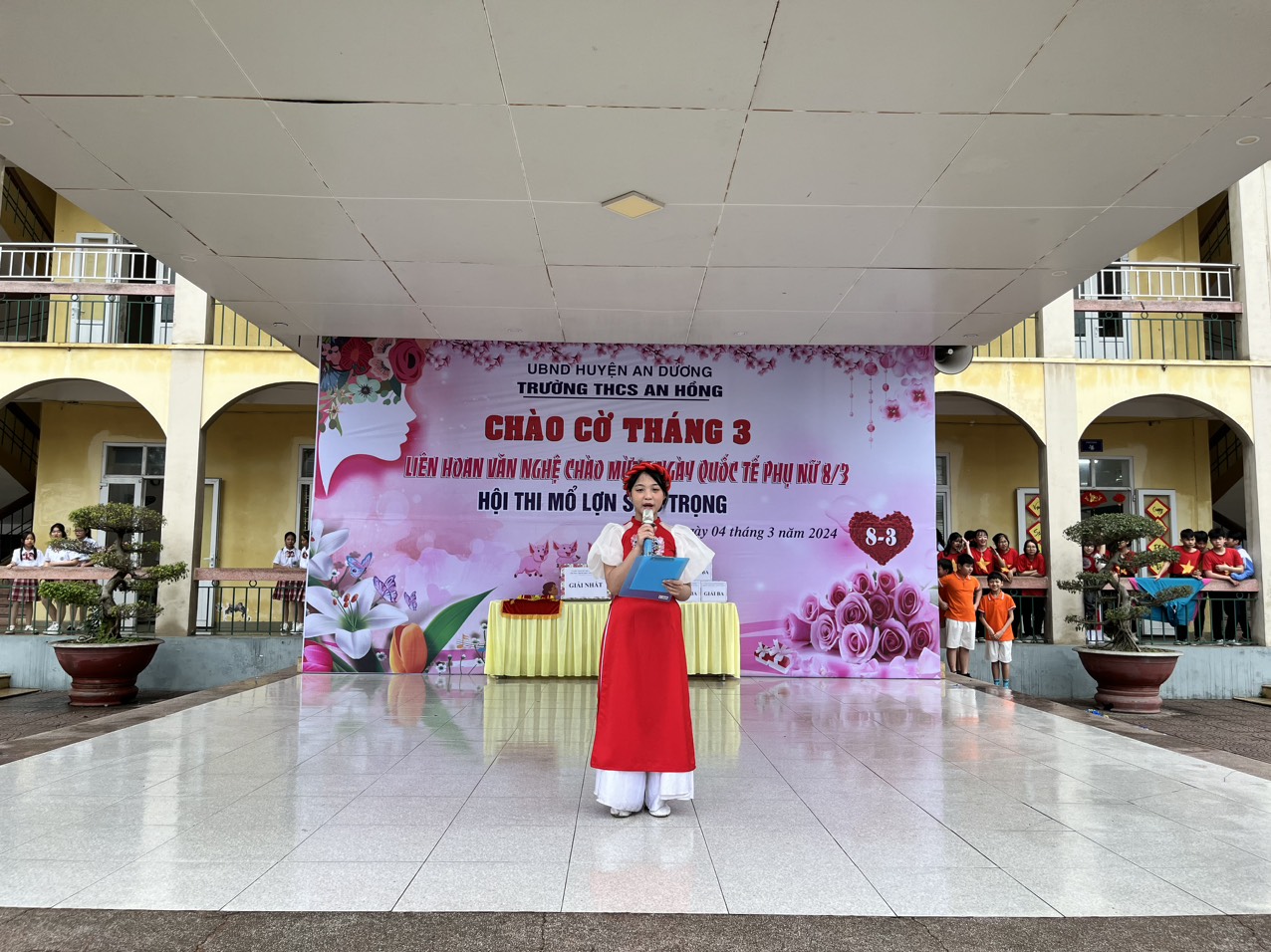 Cũng trong hôm nay, Liên đội trường Kim Đồng trường THCS An Hồng đã long trọng tổ chức buổi lễ Chào cờ đầu tháng nhằm tổng kết công tác thi đua của Liên đội trong tháng 2 đồng thời đề ra những chủ trương,nhiệm vụ của công tác Đội trong tháng 3. Tại buổi lễ, cô Nguyễn Thị Dung, Hiệu trưởng nhà trường đã trao tặng cờ thi đua cho Chi đội 8A5. Đồng thời tặng thưởng cho các em học sinh đạt thành tích cao trong kì thi thử vào lớp 10 THPT lần 4 năm học 2023-2024.