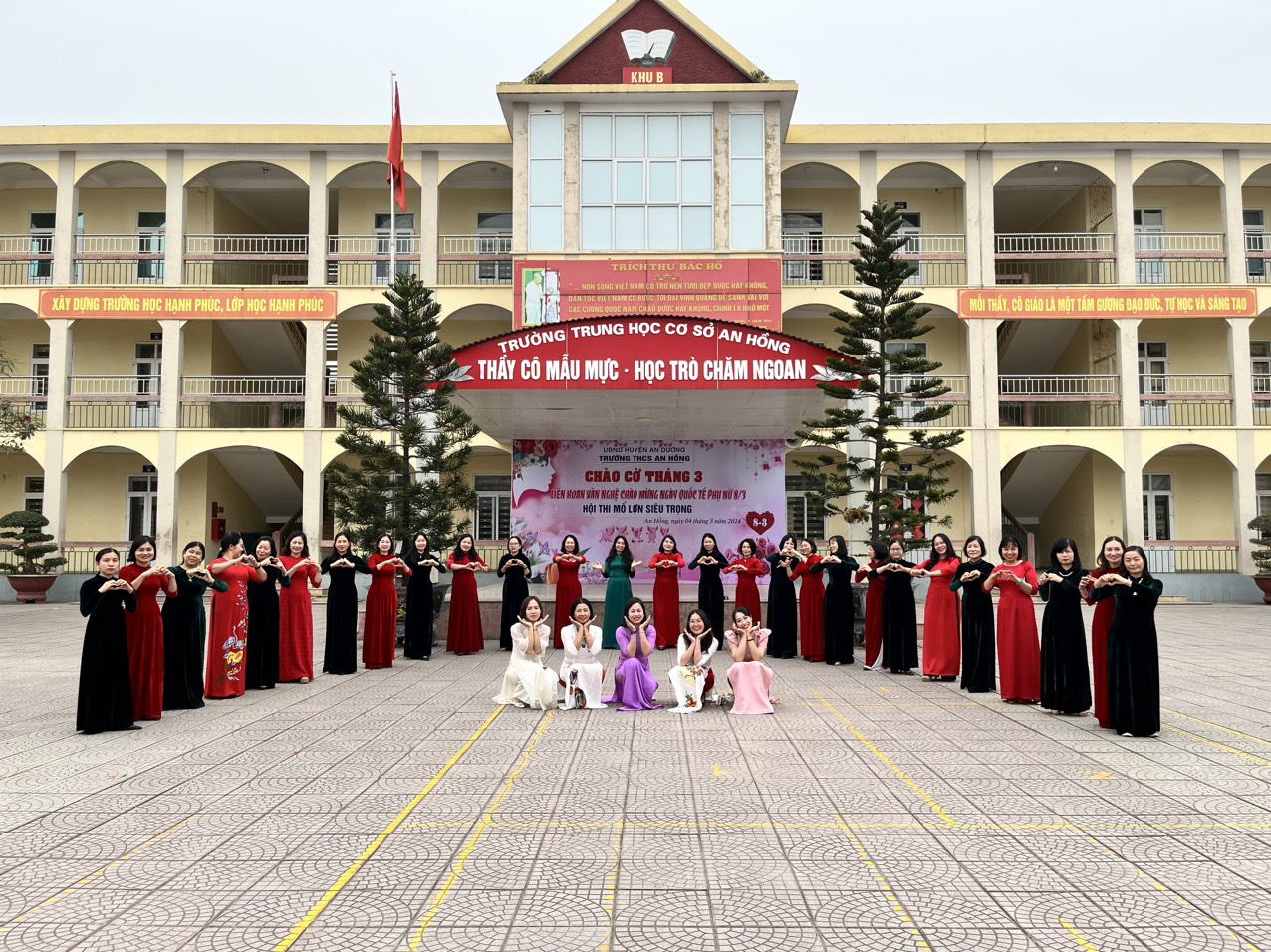 Từ xưa đến nay, chuẩn mực của người phụ nữ Việt Nam luôn là sự dịu dàng, nền nã, đảm đang. Vẻ đẹp ấy được toát lên mạnh mẽ từ vẻ đẹp của tà áo dài truyền thống. Trân trọng vẻ đẹp của tà áo dài dân tộc, các nữ CBGV-NV của trường THCS An Hồng luôn sử dụng tà áo dài trong các sự kiện quan trọng do nhà trường và địa phương tổ chức. Hoà chung không khí vui tươi, phấn khởi kỉ niệm 114 năm ngày Quốc tế phụ nữ (8/3/1910 – 8/3/2024) và 1984 năm khởi nghĩa Hai Bà Trưng, sáng thứ 6 ngày 8/3/2024, các nữ CBGV-NV trường THCS An Hồng đã đồng loạt mặc áo dài để hưởng ứng tuần lễ áo dài năm 2024. Qua đó nhằm khơi dậy niềm tự hào, trách nhiệm giữ gìn, phát huy di sản văn hóa Việt Nam trong mỗi cán bộ, hội viên phụ nữ. Là dịp để các chị em phụ nữ có cơ hội thể hiện nét dịu dàng, duyên dáng, mềm mại của mình qua tà áo dài truyền thống.